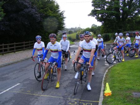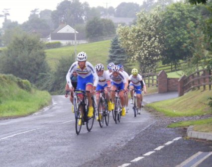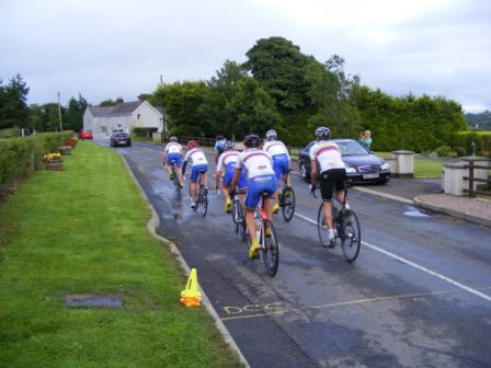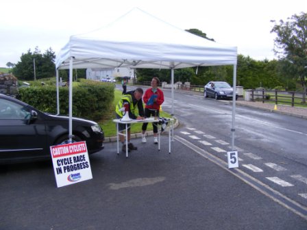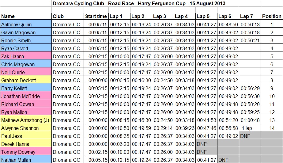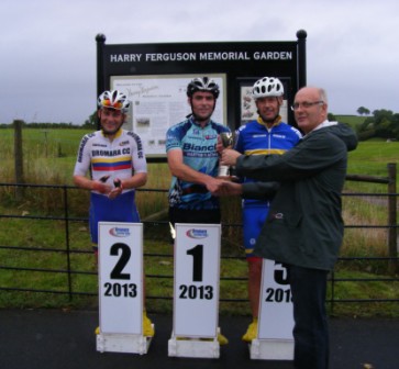 League - Round 20 Harry Ferguson Road Race - Magheraconluce Road (map) 15 August 2013 The final road race of the season was the Harry Ferguson Cup which starts from the HF memorial gardens on the Magheraconluce Road. The HF gardens have matured even more this year and were in a great condition on this August evening. A link to the gardens website is given here. Earlier in the day there had been some very heavy rain showers going through. The race was on the point of being cancelled and the club were waiting on the word from the race secretary, Chris Magowan, as to whether it would go on or not. The call was made at 5pm that the race would go ahead. When the riders showed up at 6:30 the rain had passed through and the riders had a dry start to their race. There was a light rain shower during the race which thankfully went away quickly. The timekeepers were provided with a gazebo to protect them and the paperwork from getting wet. With the wet weather during the day there was a lower number of riders turning up to race, just 18. There were 3 groups on the night. Group 1 had 5 riders, Group 2 had 6 and left 2 minutes 15 seconds later, Group 3, the "scratch group" left 3 minutes later and had 7 riders. The riders had 7 laps to complete and by lap 4 the scratch group had caught up to the majority of riders with only Matthew Armstrong staying away until lap 5. In the end it was a sprint between Anthony Quinn and Gavin Magowan with Anthony taking the win and lifting the cup. Nathan Mullan had crashed on lap 5 but luckily had only received some light cuts andbruises. Well done to all the riders. Many thanks to the time keepers and marshals. Timekeepers: Colin Roy and Lisa Millar Marshals : At the bottom of the hill: Noel and Gary Gibson At the crossroads: Michael Mullan, John O'Hare (guest), Mike Barton and Paul Gick At the Magheraconluce Rd crossroads: Marcus Magowan, Conor Rice, David Chambers and Kevin Walker. Report & photos: Martin Grimley Photos by Fritz: here |