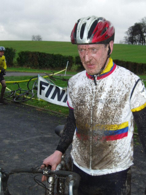 the wheels were flicking up. I am sure XMTB were worried up until about a 1/2 hour before the race as there didn't seem to be a great turn out. I mentioned this to "Uncle Andy" Potts and he told me this was normal this year. He said that near the start time I would see the roadie fraternity weigh in, and he was right. You see us xc types normally are there from first light. The start got slightly crowded into the first corner but the first faller was just over the first bmx jump. He must have been a jockey the way he rolled into a ball, was like beachers brook! As the race progressed conditions got slippery due to a combination of bare tree roots and clay. Robin Seymour didn't seem to be finding the going difficult. By the 4th lap he came flying past me, something he was to repeat on the 7th or 8th lap. The up side of this was less laps to complete. There was some confusion at the end of the race. As I completed a lap I was told I has now on the last lap. I looked up ahead and seen Paul Anderson and decided to try and catch him. I managed to catch and pass him just before the end only to learn that I had another lap to do. Paul rode past and I hadn't the energy to catch him. Later in the lap I managed to catch up with him but he beat me in the sprint for the line. Caroline had yet another win in the