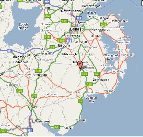 Directions FROM BELFAST Either head out of Belfast along the Saintfield Road (A24), through Carryduff then onto Ballynahinch or take the M1 out of Belfast and then exit at junction 6. Follow the signs for Ballynahinch (A24) FROM CRAIGAVON / THE WEST Come along the M1 to junction 6 Lisburn. Process around the roundabout below the motorway and take the turn for Ballynahinch FROM BALLYNAHINCH Leaving Ballynahinch heading south along the A24 towards Newcastle take the road on your right signposted for Castlewellan and Spa. Head through Spa following the signs for Castlewellan. The sign posts for Dunmore will be on your right at the crossroads. FROM NEWRY / DUBLIN From Dublin follow M1 to Newry. Go through Newry city centre and head towards Rathfriland along the A25. Head through Rathfriland towards Castlewellan. Once through the town of Castlewelland head towards Clough. In Annsborough (a mile outside of Castlewellan) take left towards Ballynahinch / Spa (B175). As you head towards Spa look for sign posts to the event on the left hand side |