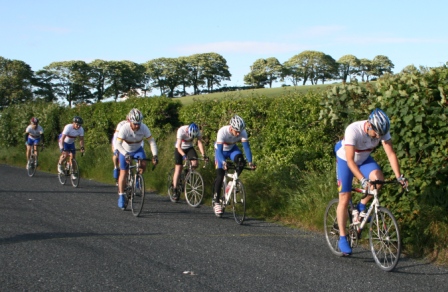 # = miles per hour (mph). This is based on the actual time taken to complete the event once the handicaps have been removed. Well done to Paul Smyth for getting maximum points (50). As Ronnie and Davy took the long route, it was felt that it would be better to judge them on their average speed, given this they were awarded with points equilalent to second and sixth respectively. Timekeepers: Trevor Annett and Stephen Phillips Marshalls: Anne Maguire, John Ruddell (Ards CC), Darren and Sharon Weir, James Kilpin and Gavin Magowan. Photography: Martin Grimley |