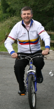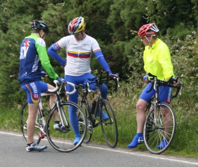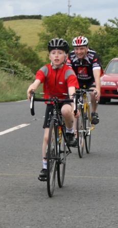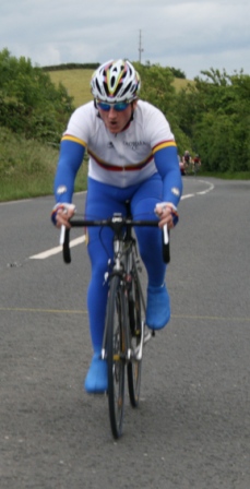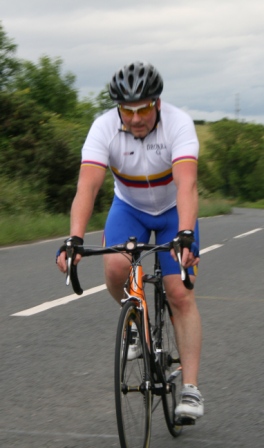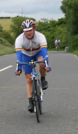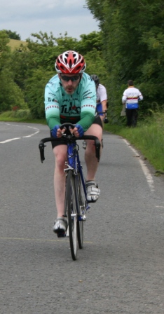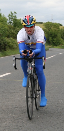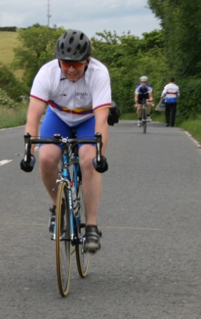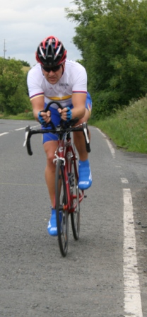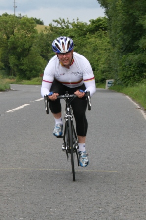 | 3 July 2008 Our biggest turn out yet, with 25 showing up tonight for Round 13 of Dromara CC's club league. There was even a small crowd of spectators! Yet again it was great to see more new faces giving time trialing a go. It was the second time that this venue has been used this year, the previous occasion was the first round back in April, a 2-up time trial. Given the very wet weather all day it was great to see a nice dry evening and this helped to encourage so many to show up. Among the riders we had Darren Weir, back on his bike after recently breaking his collar bone and ribs, newcomers Connor and Ryan Mallon, and Ross Galway just back from 3 weeks in the USA. Fastest on the night was Paul 'the machine' Smyth, followed by Noel Gibson and amazingly Darren Weir, who has lost very little power in his legs over these weeks away from competitive cycling! Young Zak Hanna set a personal best tonight due, in some part, to his new aero bars. Well done Zak. Tonight also saw a great deal of club clothing being purchased after a new delivery arrived this week. The event was delayed due to the crowd gathered around a car boot trying on the new gloves! "It was like Paddy's market!"