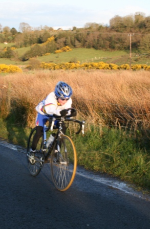 | 24 April 2008 Tonight was the start of the individual time trials marking Round 3 of Dromara CC's Club League 2008. Seventeen riders gathered on the Dundrum Road outside Dromara for the 10 mile ride out to Edendarriff Road and back. The weather was dry, warmer than the previous two rounds (11°C) with a light wind coming from the south west (8 mph). Fortunately the heavy rain that had appeared at 5 pm had passed and we were left with an excellent evening. There was bad luck at the start for Noel Gibson who had a spoke break on his front wheel. He had to abandon plans to ride and instead helped out with the marshalling. The order of cyclists setting off was disrupted when 3 cyclists missed their slots and had to be put to the end of the list. Derek Hanna did another great job of timekeeping. Many thanks Deek.