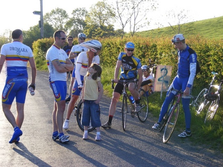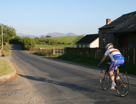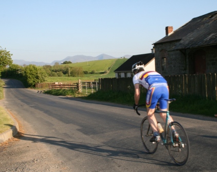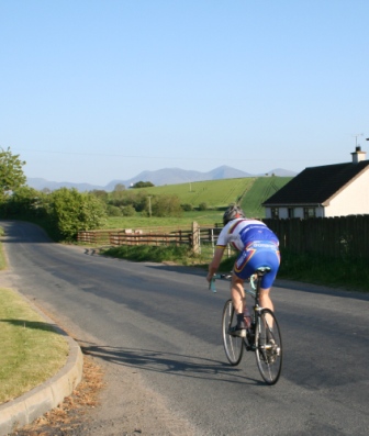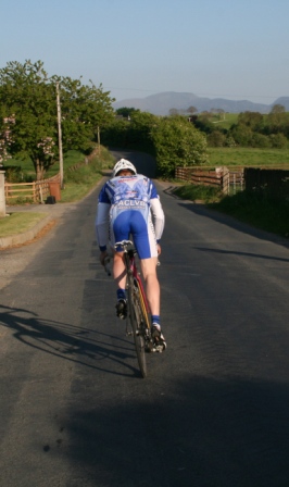 | 15 May 2008 Round 6 of Dromara CC's club league was held this evening at the distant venue of the Lackan Road, Ballyroney. Another nineteen riders showed up for the 9.75 mile time trial, just short of the 10 miles due to the necessity of finding a suitable location to 'turn'. This week's entry included three guests from three clubs, Roger Aiken (Banbridge), Stephen Heasley (Lantern Rouge) and the regular David Cartmill (West Down Wheelers). The sign on was held just over the old railway bridge and the riders headed east towards Castlewellan (map) The weather was again kind with clear blue skies, little wind but cooler than previous evenings this week. Derek Hanna was again acting as timekeeper and had got the riders started early tonight, 7:03 pm, which meant that the whole event was over by 8 pm. Many thanks again Deek. Well done to both Stephen Heasley and Judith Robinson for completing their first time trials.