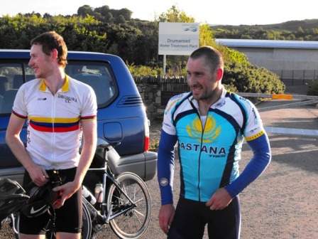 League - Round 12 Road Race - Drumaroad 18 June 2009 Heavy showers had swept the country through most of Thursday but by the evening some blue skies had appeared and 35 riders from Dromara Cycling Club decided to go ahead with the planned road race which was the 12th event in the 2009 club league. The venue was the 6 mile Drumaroad circuit which was also the 12th event last year. Looking back to last year it was a better night but the club had only half the number of participants which is a good measure of the rapid growth of the club this year. The riders were split into four starting groups after Trevor, Nigel and Stephen had sorted out the time handicaps. Among the riders were two juniors,Chris Weir and Connor Mallon, who competed over 2 laps of the circuit. Chris won by just under 2 minutes. The senior riders had 4 laps to complete in an evening which thankfully stayed reasonable dry if a bit windy. With the Newry 3 day event at the weekend Ronnie Smyth had chosen to marshall and Darren Weir was "taking it easy". This left Davy McKnight to set a charge from the off with hardly anyone to hold his wheel however a few did including the young talent Matthew Patterson and promising newcomer Damien McDonald but, most surprising, was Michael Pyper who had an excellent race finishing second. Many thanks to all the marshalls who kept the course save among whom was Paul Smyth who won this event last year and seems to have recovered from his fall the previous week.