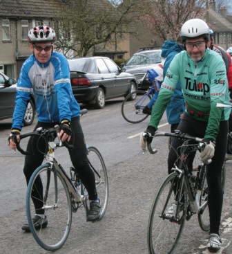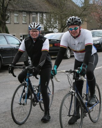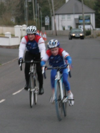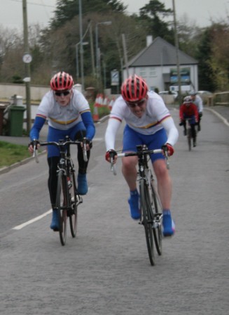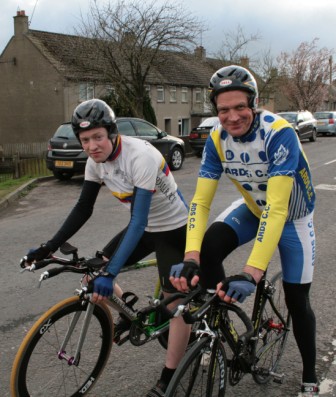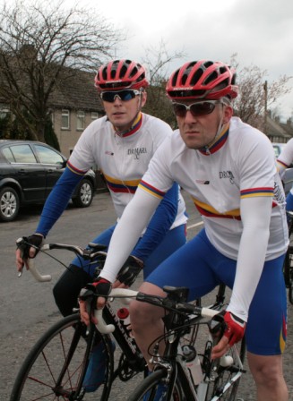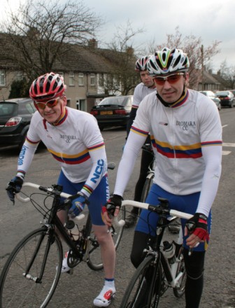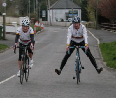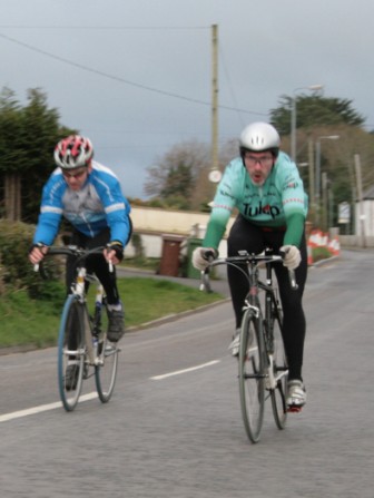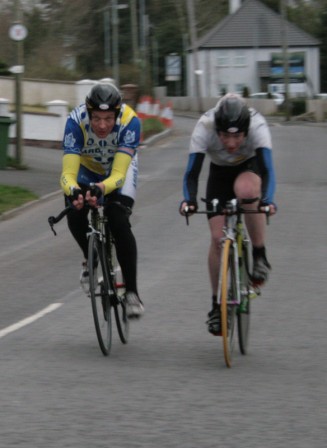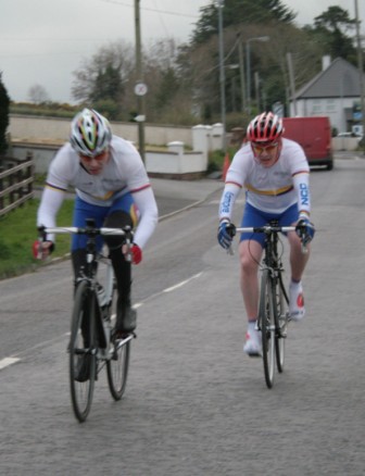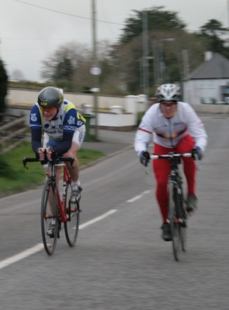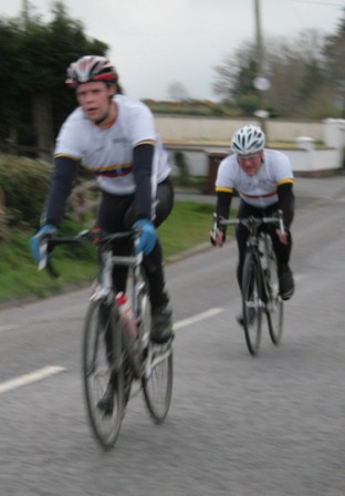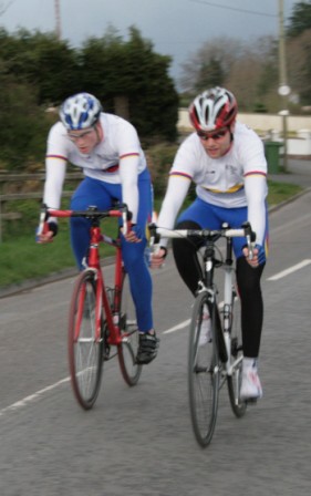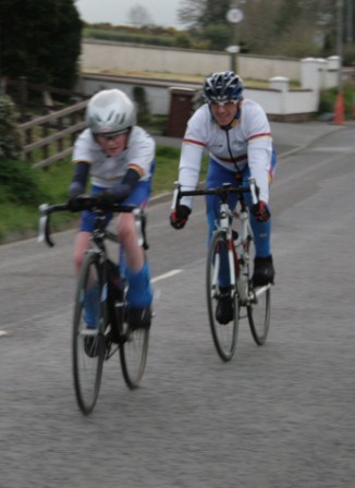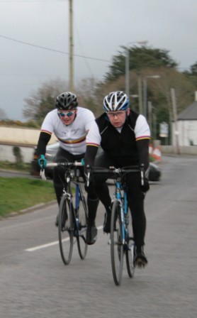 League - Round 2 2 up TT - Dundrum Road, Dromara 9 April 2009 A cool and blustery evening greeted the 34 riders gathered for the 2-up 10 mile time-trail on the Dundrum Road in Dromara. Among the riders were those who had just returned from a week of cycling in Mallorca and none of them looked pleased to be standing around in the cold. Trevor and Davy were kept busy sorting out the starting order with the first of the "pairs" getting away shortly after 7 o'clock. This was followed by 16 other sets of riders however Noel Gibson had to go it alone as his brother Gary got a puncture before setting off. The Dundrum Road had been recently resurfaced but this did not help much as the 20 mph windy conditions made sure that there were very few personal best times set. The fastest on the night was the pairing of John Ruddell (Ards CC) and Dromara's Paul Smyth. These two had set the fastest time the previous week. Well done to both of them. Setting the same time on the night was Marcus Magowan who arrived back on his own when his pairing, Neill Currie, punctured out on the course. Noel Gibson made a great solo effort to finish second on the night. Only seven seconds slower than Noel was the much improved pairing of brothers Alan and Dennis McMullan. Behind the McMullan brothers were Trail Quest teammates Stephen Heasley and Niall Cochrane who set an excellent time. Only six seconds slower on the night were Ards CC's Dessie McIlwrath and newcomer to Dromara David McClurg. David was marshalling the week before but that did not seem to slow him down this week. Well done to all the riders for turning up and participating enthusiastically especially given the poor weather. Thankfully it didn't rain!