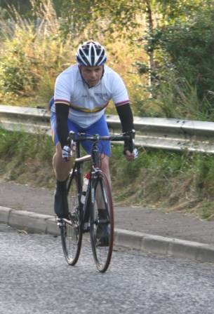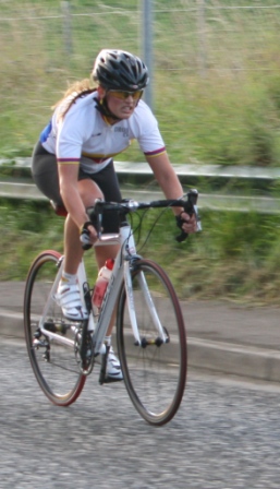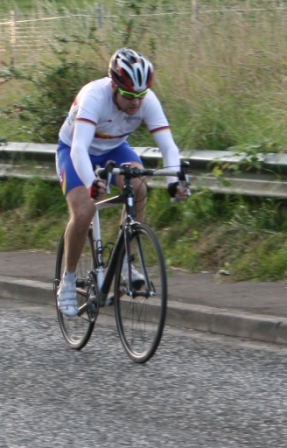 League - Round 22 10 mile TT - Lurgan Road, Dromore (map) 27 August 2009 Dromara Cycling Club held their last 10 mile time trial of their 2009 league at the Lurgan Road, Dromore which was a change from their planned circuit at Annahilt. With blustery conditions all present were glad the rain stayed away to leave a bright evening. The event got underway promptly at 7 pm with the junior riders Connor Mallon, Christopher Weir and Zak Hanna setting off first along the Lurgan Road separated by only 30 seconds each. Another 30 seconds behind these three was a visitor to the club Laura Casey. The 30 second gaps continued on down the line for 17 of the 30 competitors in order to make maximum use of the available light. After 9 minutes the gaps returned to the normal 1 minute with the faster men going off last. Final man away was 1st cat rider David McKnight who has been setting some great times recently and tonight was no exception with David finishing in 23 minutes and 27 seconds on a undulating course with challenging wind conditions. Less than 20 seconds behind David was veteran rider Ronnie Smyth who, with his new time trial bike, had hoped to close the gap further on David. Over 30 seconds behind Ronnie was race ace Darren Weir. Setting a superb time was Ross Galway who finished fourth fastest just under 26 minutes. Behind Ross was the first of the Magowan brothers, Gavin, who was only one second slower than Ross but still under 26 minutes. Damien McDonald, our current league leader,was sixth fastest on the night with the other Magowan brother Chris in 7th place. As per all of our time trials we have time handicaps and these are applied after the event to see who has improved on his/her average time. With a repeat from last week's 10 mile time trial it was our youngest rider on the night Connor Mallon who finished top of the time adjusted table. Connor has consistently improved over the course of the year shaving more than 5 minutes off his 10 mile time trial. Behind Connor was one of our other youth riders, Christopher Weir who was also second this time last week. Christopher has also steadily improved over the season. In third place in the adjusted table was Kevin McDonald. Looking further down the finishers it was great to see Mary Hunter competing in her first 10 mile time trial with the club. Many thanks to the timekeepers and marshals for doing a great job. 10 mile time trial