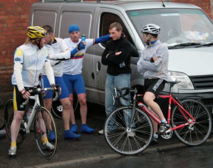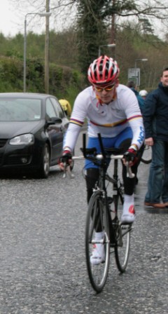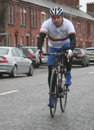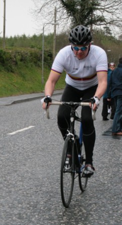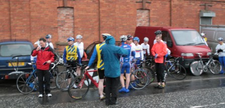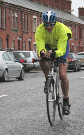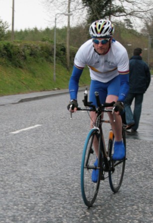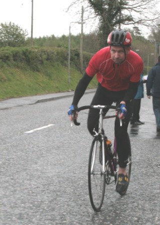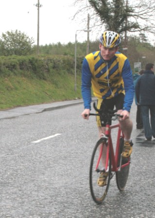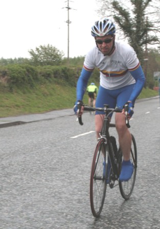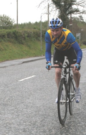 League - Round 4 10 mile TT - Lurgan Road, Dromore 23 April 2009 The forecast had been for heavy rain this evening which thankfully only turned out to be 'ordinary' rain which was only present for the start of round 4 of Dromara Cycling Club's Thursday night league. Trevor Annett, the club secretary, was kept very busy sorting out the 42 riders who had turned up in the wet conditions ready to put themselves through the difficult 10 mile time trial along the Lurgan Road outside Dromore. Among the riders gathered tonight were five guests from other local clubs as well as one cyclist who was not attached to any club. At this venue last year there were only 19 riders to deal with but tonight, given the large numbers, the riders were started at 30 second intervals instead of the usual one minute gap. First away was Caroline Patterson who was just getting back into competitive cycling this year. Caroline was followed 30 seconds later by Dromara's young star Zak Hanna. Many thanks to Stephen Younge for his assistance in getting the riders underway. After 22 minutes Trevor had got all the riders onto the road but it wasn't long before the first rider was coming back, in this case it was racing sensation Darren Weir. Darren set the fastest time on the night of 24 minutes and 3 seconds and, despite the conditions, this time was 9 seconds faster than Darren got at this venue last year. Darren had also been 6 seconds faster than fellow road racer David McKnight and thirty seconds faster than racing veteran Ronnie Smyth. Only one second slower than Ronnie was young Paul Smyth who was fastest in the three 2-up time trials held earlier this year. This was the first 10 mile individual time trial this season and the times achieved tonight will form the basis of the time handicap for the next time trial. Next week is the first road race of the season which is to be held on the Glasdrumman Road outside of Ballynahinch. Note
