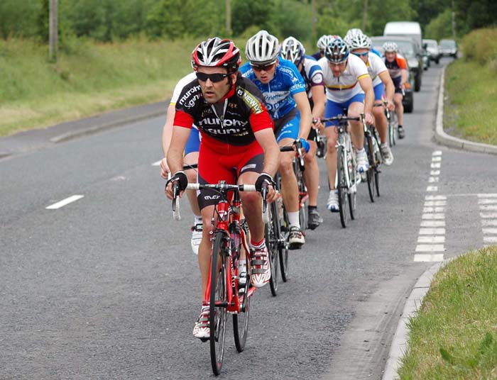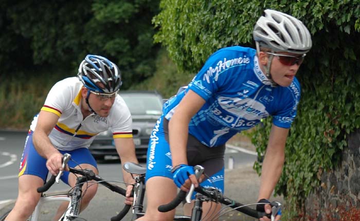 | Noel Teggart Memorial 8 June 2008 A warm beautiful day was perfect for Banbridge CC to promote the ever popular Noel Teggart memorial race. The race was held on the fast Banbridge, Gilford, Scarva circuit, with the race headquarters resting at Havelock Park. There was also a full programme of Youth racing to be held. First riders off where the cat 1s' and 2s', with the cat 3s', Ladies and Juniors leaving a minute after. Representing Dromara CC in the cat 1 and 2 race was Ronnie Smyth (the big 40), Darren Weir and Davy McKnight. There was also a crowd of top class riders turned up, such as FBD Ras runner-up Roger Aiken and Eurocycles' Ryan Connor. The main race was very fast flowing, with the break going further away from the bunch every lap. As the race was coming to an end, there was a very, very fast and tight sprint for 1st between Roger 'Dodge' Aiken and Giant Asia professional David McCann. At the end it was Roger who came out in pole position, Roger predicting this win with my dad before the start. Davy McKnight rode extremely well to finish 9th, and was described as the 'Man of the Day' after his aggressive attacking. Unfortunately for Darren Weir he punctured in Scarva on the last lap and had to pull out of the race. As for birthday boy Ronnie Smyth he rode well to finish in the main bunch. Well done to the 3 hair bears. The Youth races had a good crowd entered, with over 20 riders turning out to race. The under 12s' had to race from Havelock park to Gilford, which was about 6 mile (?) in which Banbridges' Mark Downey winning to the delight of the home crowd. A special mention must go to young Christopher Weir as he completed his first open road race. Watch out Darren, he could start to beat you on the hills!! The under 14's had about 11 competitors at the starting line for a fast 9 mile race to Scarva Industrial estate, just outside Banbridge. Juiced Orchards' Robert Anderson beating fellow team mate Ryan Turner, a 1-2 for the Juicey boys. As for me, it was a sprint for 7th between Dan Runciman and I to the finish, with me just pipping Dan to the post with a well fought battle. My legs are extra sore tonight, as I was away running yesterday with my school at the Antrim Forum. The under 16s' had the usual 2 candidates fighting for the first 2 places, Juiced Orchards' Mantas Spirgius and Nathan Mehaffy. I am not sure of the full result in that race but will update you when I find out. Well done to Banbridge CC for a well run event, and thanks to the weather for being kind to us! RESULTS: Noel Teggart Memorial “A” Race – Banbridge CC 1. Roger Aiken (Banbridge CC) 115k 3-06-00 2. David McCann (Giant Asia) ST 3. Paul Hellion (South Dublin) @ 30 secs 4. Adam Armstrong (Eurocycles) 5. Stephen Gallagher (An Post) 6. Neil Delahaye (Usher IRC) 7. Stephen O’Sullivan (Myhome.ie) 8. Ryan Connor (Eurocycles) 9. Davy McKnight (Dromara CC) @ 12-12 10. Simon Williams (Juiced Orchard) @ 14-00 Noel Teggart Memorial “B” Race – Banbridge CC 1. Peter Williams (Juiced Orchard) 2. Liam Curran (Curran Transport) 3. Leo McAllister (Ballymena – Scott Tiles) 4. Philip Bremnar (Ballymena – Scott Tiles) 5. Tony Boyle (Castlereagh CC) 6.Brendan Graham (U/A) 7. Richard Lyons (Omagh Wheelers) 8 Conor Campbell (Drogheda Wheelers) 9. Jonathan Gormley (Emyvale CC) 10. Marcus Christie (Usher IRC) For more details about the race, see the Cycling Ulster website. Photos courtesy of Marian Lamb, Cycling Ulster Report by Zak Hanna More photos can be viewed here