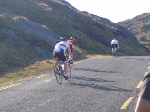 Saturday 12 September 2009 Report by Peter Swann Having completed a formidable cycle challenge last year from Mizen Head to Malin Head, 483 miles in four days, I decided on a different challenge this year. The Lost Sheep Half Iron Man was what I decided upon, details below:"The Lost Sheep Half Iron Triathlon has since it’s inception in 2003 gained a reputation both nationally and internationally as one of the toughest half ironman distance races on the triathlon circuit. Traditionally staged in September each year the event starts with a 1,900m swim in the scenic Kenmare Bay followed by an 83km cycle which takes competitors over two category one climbs on the Healy and Caha passes and finishes after an undulating 21km run mostly on quiet country roads in the picturesque town of Kenmare" http://www.corktri.com/wordpress/ Quite a challenge you might say but for a very worthy cause in Marie Curie Cancer Care. So completed the event successfully on Saturday in a time of 6 hours 19 minutes. Not bad for my first Half Iron Man and even better considering that I was carrying an ankle injury sustained exiting the swim :) The water was freezing for the swim but it was a beautiful sunny day which made the cycle, although hard, very enjoyable with the beautiful scenery to look at. I thought the cycle was hard but the run was even harder! This was due to the 25 degree plus heat and hilly nature of the course. A number of competitors actually collapsed with heat exhaustion. I hope that they have recovered ok. A big thank you to my support team on the day. My girlfriend Sheena provided superb support and encouragement throughout including peanut butter and strawberry jam sandwiches which where the envy of the other competitors. Also anyone who has contributed to Marie Curie and also of course Cork Triathlon Club for running the event. I have already raised £500+ for Marie Curie but if anyone else wants to donate then that would be much appreciated:
