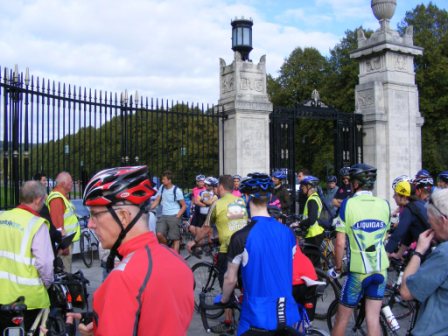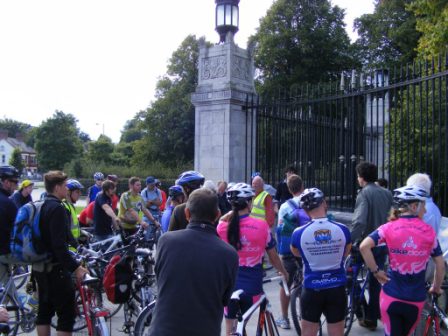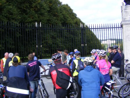 | 15 September 2009 On Tuesday 15th September there was a mass bike ride to Stormont. as part of the campaign by Friends of the Earth Belfast to deliver a vision of Belfast as one of the top ten cycling cities in the UK. The intention was to gather together cyclists to head up to the main Stormont buildings to assist in the handing over of a policy paper by Andrew McMurry to the Minister for Regional Development, Conor Murphy. The campaign aims to increase the amount of cycling in Belfast to 10% of all journeys by 2020. In order to do this, the group has identified the need for an annual spend of £15 per person on cycling infrastructure and the need for a cycling strategy from 2010 to 2020. The cyclists met at the main Newtownards Road entrance to Stormont at 4 pm. Andrew gave us a brief overview of the plan before we all made our way up the mile long hill to the main building. After a photo call and short wait the minister came out to accept the paper and pose for pictures. Among the gathered riders were three members of the Bikedock Belles, who were there as part of their publicity drive before they start the Race Around Ireland on Wedneday evening. The three ladies also had two members of their support crew as well as Derek Armstrong, Managing Partner of the Belfast cycle store Bikedock. Also there were two other Dromara club members, Peter Bryson and Martin Grimley. For more details about the campaign go to http://belfastcyclecity.org.uk/ For more photos of the event click on their facebook page here | Photos by Martin Grimley![]() ![]() |