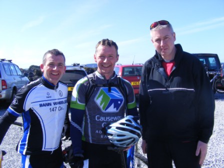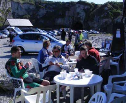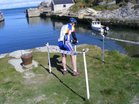 | Sunday 18 April 2010 Ballintoy The final round of trail quests organised by Trailblazers took place on Sunday 18 April 2010 from event headquarters at Rourke's Kitchen in Ballintoy Harbour. These leisure mountain bike events have proved popular over the 3 round series providing the majority of riders areas & roads they had never cycled on before. Organisers Jon Kay and Ivan Park were there early in the morning to greet the riders who started arriving around 9:30 am. The normally picturesque surroundings were covered with mist with a light rain greeting those arrivals. The object of the event is to locate as many of the 30 markers as possible in the time limit. Riders could work as a team or go solo with each team given a laminated map of the area showing the location and point value of each of the markers. All teams were issued with a SportIdent timing dipper which they used to 'clock' each of the markers. At the end of the event the computer was able to print out a list of times showing split times between markers as well as the overall points, including any penalty points. Penalty points were issued if the teams did not arrive back within the time limit. Nearly all of the 23 teams went for the 4 hour event. The markers had been laid out across an area from Bushmills to Ballycastle with lots of open road sections between markers. First away were series leaders Phil O'Neill and Geoff Brown from Dromara Cycling Club who formed a team called "Star Fangled Nuts". The rest of the teams followed suit, setting the clock running as soon as they 'dipped' at the Start marker. The first stage was to climb up and out of the harbour itself and back onto the main road. The clouds cleared away and left a stunning sunlight North Antrim Coast line and country roads. Perfect cycling conditionss. Phil and Geoff maintained their dominance of these events by collecting 27 markers to finish on a fantastic total of 570 points. Not far behind was a solo effort from team Trailbadger (540 points) with Paul McArthur (Average Joes) finishing third with 500 points. Team "Gerry needs pacemarker" did not live up to the team name and finished fourth just one point away from regular team "The Losers" who had only Alan McMullan riding in this normally 3 man team. Team CCAR was sixth. Once the riders returned to the harbour they had to "dip" in the "Finish" sensor. Then they could relax, take their helmet off, have a drink of complementary juice before heading into the café for a nice cup of soup, roll and a cup of tea or coffee. The teams who had returned first were able to enjoy the sunshine and watch the other teams arrive. Overall results tables were produced regularly to keep the teams interested until the end. When all teams were back in there was a prize draw for vouchers which had been supplied by Belfast bike shop, Bikedock. Many thanks to Jon Kay and Ivan Park for a great days cycling. Overall results to follow. Results 4 hour event