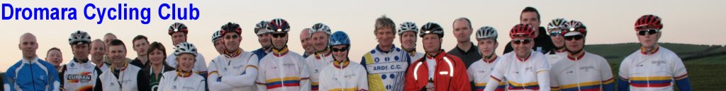 25-09-09 Peter Swann does the Kenmare 'Lost Sheep' Half Ironman. Peter's report and pictures here 15-09-09 Mass bike ride to Stormont Report and pictures here 09-09-09 FOLLOW THE BIKEDOCK BELLES ON OUR MESSAGE BOARD -> Less than a week to go to the start of the Race Around Ireland for the Bikedock Belles Details here ![]() 13-09-09 Dromara Road Racers scoop top Elite team and a Vets Silver medal at the Ulster Road Race Championships today Report and pictures here courtesy of Cycling Ulster ![]() 10-09-09 Dromara CC hold their final road event of the season at Begney Hill Road Report and pictures here 06-09-09 Dromara CC have a successful day at Apollo's MTB race in Craigavon Report and pictures here 05-09-09 (updated 06-09-09) Final league standings. The top 3 in the general classifications were Damien, Ronnie then Davy when the best 20 rounds were calculated. In the junior league we have joint winners Matthew and Zak, with Christopher finishing third. In our first women's league competition the top two were separated by only one point with Caroline finishing just ahead of Therese. Summary table here Main table here Any queries please send me an email 03-09-09 Ronnie fastest on the night. Zak gets the fastest handicapped time. Report and pictures here 28-08-09 Club league calendar after 22 rounds here With only one more round to go before the best 20 out of 23 rounds are calculated. Women's and Junior's leagues have been amended as well. 26-08-09 Connor again gets maximum points. Davy McKnight was again the quickest on the night. Report from Round 22 here. 26-08-09 (updated 27-08-09) Well done Connor on getting maximum points at Downpatrick Road time trial Report from Round 21 of the league here Now with photos 14-08-09 Darren gets his name on the Harry Ferguson Cup again ! Report and pictures here Results after 20 rounds here 12-08-09 More than 220 riders support Dromara CC's annual Mourne Sportive & Hilly leisure Tours Report and pictures here 8-8-09 Club league after 19 rounds Table has shown the points for general classification but now it also shows the points so far for the juniors and womens league. These points are only accumulated from the 10 events that were preselected at the start of the year. In the general classifications Damien is still out in front but now has Ronnie just 66 points behind him. Matthew drops to third. In the junior league Matthew has a 35 point league over Ryan and Zak who have equal points (191). In the women's league it is close battle between Caroline and Therese. See table here 6-8-09 38 riders at Spa lake for the 10 mile time trial Report and pictures here 30-07-09 Big turn out at the Anahilt circuit for a great evening of racing Report and pictures here 27-07-09 Great day trip to the Isle of Man Report and pictures here 26-07-09 Round 17 of the league - road race at Glassdrumman / Old Ballynahinch Road Results and photos here 21-07-09 Report and pictures here ![]() 22-07-09 Club league results after 16 rounds Damien charges on, now 61 points clear at the top of the league. Ronnie now moves into the top 3 right behind Matthew. Only 3 riders have now attended very event. Click here to view the league table. 22-07-09 Round 16 - second of the 16 mile time trials Report and pictures here 15-07-09 Zak's report from the All Ireland Youth Championships 2009 Click here 14-07-09 Round 15 - New race circuit on Kinallen - Nice night for a tough race. Report here 09-07-09 Martin and Stewart join forces to compete in the final Trailblazers Trail Quest on Sunday 5 July 2009. Report here. 03-07-09 (updated 06-07-09) Club league results after 14 rounds Four of the top 8 have not missed a week. Gavin moves into 3rd. Damien stretches his lead. Click here to view the league table. 02-07-09 New circuit at the Killyleagh Road in Downpatrick for Round 14 of the league Report and pictures here 26-06-09 Round 13 of the club league with both a 16 and 25 mile time trial on offer Report here 20-06-09 (updated 21-06-09) Club league results after 12 rounds All change at the top, see here 20-06-09 (updated 21-06-09) Good turn out at the club road race at Drumaroad for Round 12 of the league Report and pictures here 14-06-09 (updated 1-07-09) Dromara CC host the Emma McMullan and Ronnie Smyth Cup Road Races Report and pictures here ![]() 12-06-09